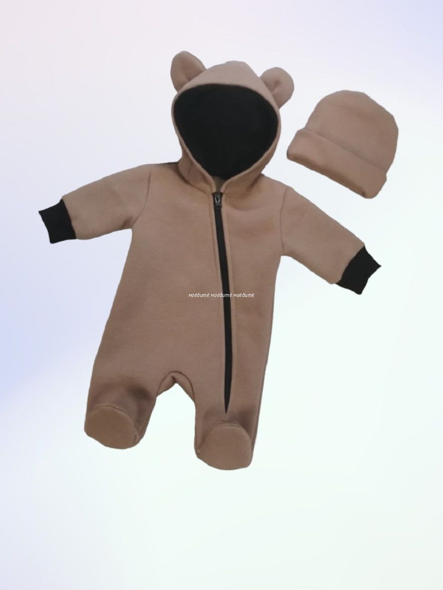 "МоёДитё" комбинезон выполнен из футера с начёсом. Комбинезон с капюшоном на подкладке и декорирован сверху ушками, с закрытыми ножками, рукава на манжетах, спереди косая молния до конца одной ножки. Шапочка из кашкорсе можно одевать как с отворотом, так и без. Очень хорошо тянется.